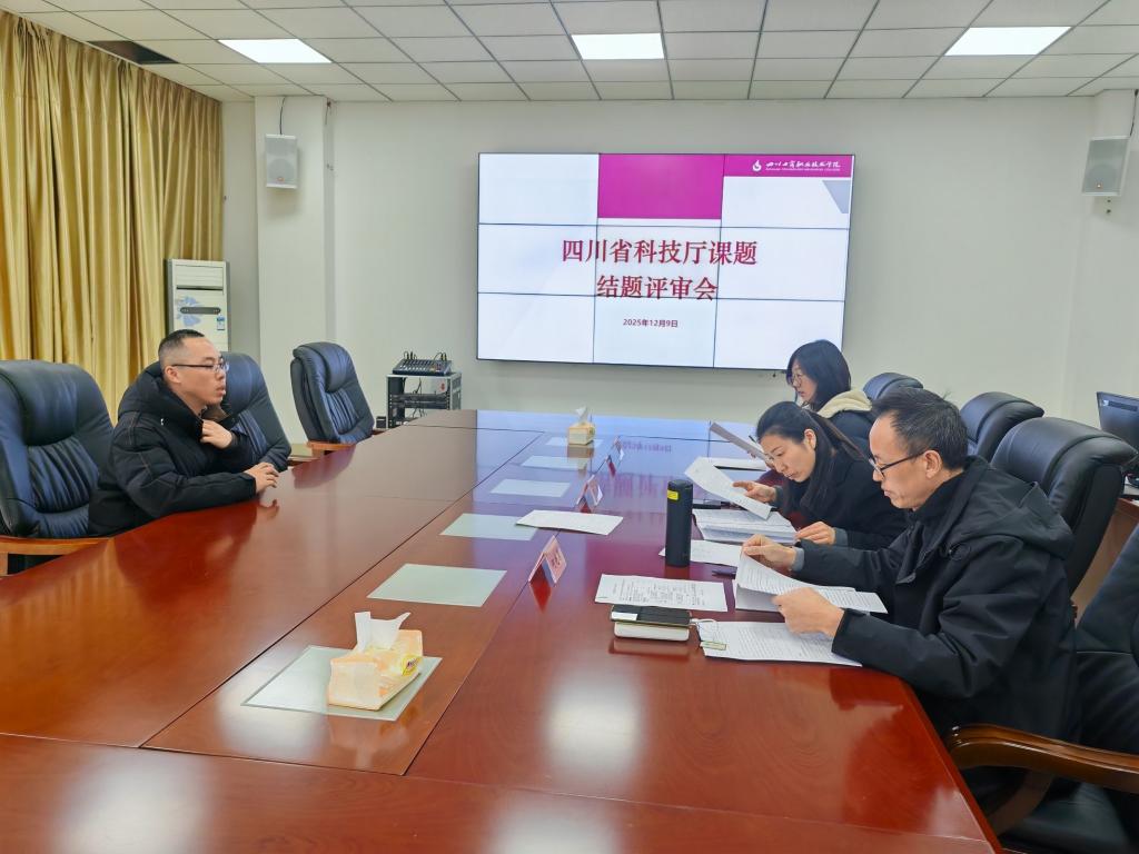 12月9日下午,四川工商职业技术学院在行政楼二楼会议室召开省科技计划重点研发项目结题评审会议,会议由科技处副处长隋明主持,校内专家何光春、李娟、邓林及科技处工作人员参会。