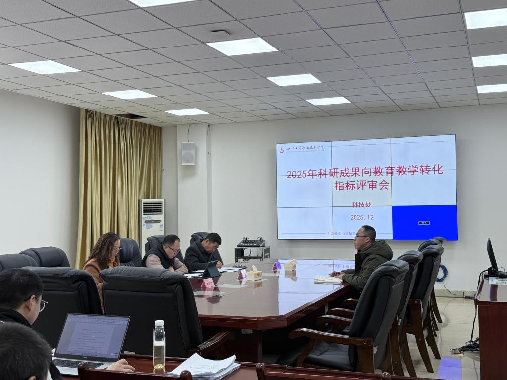 为深入推动科研创新与教育教学深度融合,落实“科研反哺教学”理念,2025年12月16日,我院召开了“科研成果向教育教学转化评审会”。会议由科技处组织,邀请校外专家四川水利职业技术学院李学明教授、四川轻化工大学韩保林副教授、成都工业学院李强林教授及各科研创新团队代表参加了评审。